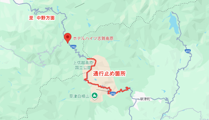 ・また、上信越自動車道「信州中野I.C.」から志賀高原・渋峠方面へのルートは、通常通りご通行いただけます。